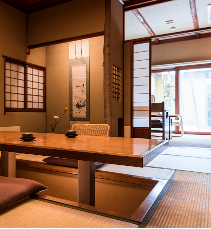 沉浸于情趣之中,倍感舒适,温柔的思绪汇聚于此,内心平和宁静。七间客房宽敞明亮,均配有专用露天浴池,带有一种令人怀念的温润空间感。在房间内悠闲地享用时令佳肴,度过至福时光。就像在另一个家中一样,无拘无束,随心所欲地度过您的住宿时光。