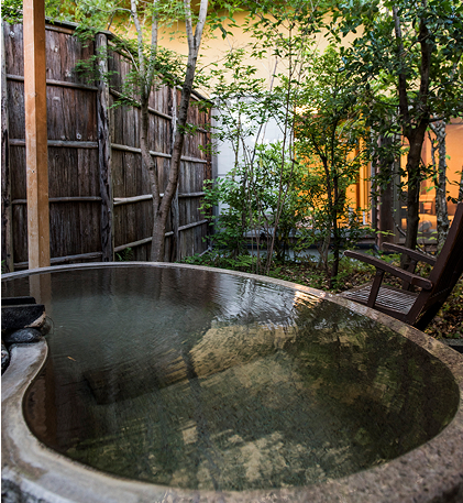 거실과 침실, 그리고 리빙 공간으로 구성된 넓은 스위트룸은 어딘가 그리운 듯한 편안한 분위기를 자아냅니다. 각 객실에는 독특하게 디자인된 전용 노천탕이 있어, 정원을 바라보며 원천에서 흘러나오는 100% 천연 온천수를 즐기실 수 있습니다. 이는 그야말로 순수한 행복의 순간입니다.